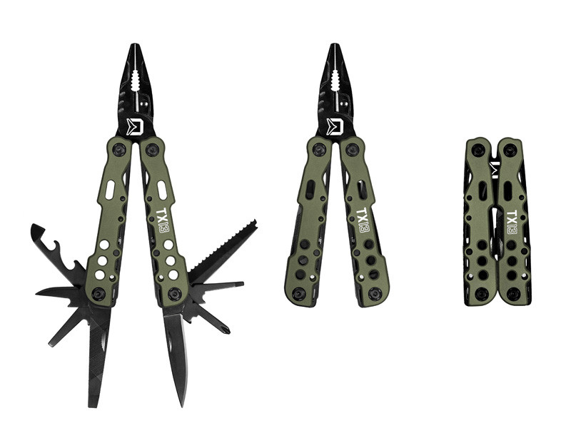 - функції: плоскогубці, ніж, пилка, відкривачка для банок та пляшок, напилок, кусачки для дроту, діркопробивач та 4 різні викрутки