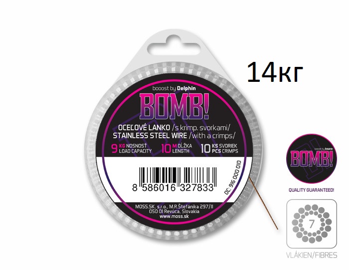 Сталевий повідець лінійки BOMB! від бренду Delphin виготовлений шляхом в’язання 7 ниток (також званих 1×7) з нержавіючої сталі. Цей повідець вирізняється своєю винятковою м’якістю, а також безкомпромісною стійкістю до гострих зубців та перешкод! Завдяки таким властивостям цього троса, будь-які маніпуляції дуже приємні та легкі. Більше того, склад матеріалу дозволяє представити приманку на найвищому рівні навіть найобережнішим хижакам!