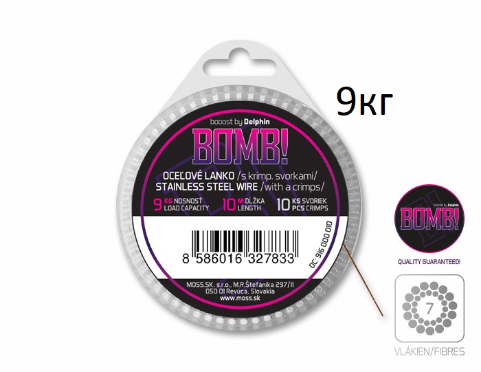 Сталевий повідець лінійки BOMB! від бренду Delphin виготовлений шляхом в’язання 7 ниток (також званих 1×7) з нержавіючої сталі. Цей повідець вирізняється своєю винятковою м’якістю, а також безкомпромісною стійкістю до гострих зубців та перешкод! Завдяки таким властивостям цього троса, будь-які маніпуляції дуже приємні та легкі. Більше того, склад матеріалу дозволяє представити приманку на найвищому рівні навіть найобережнішим хижакам!