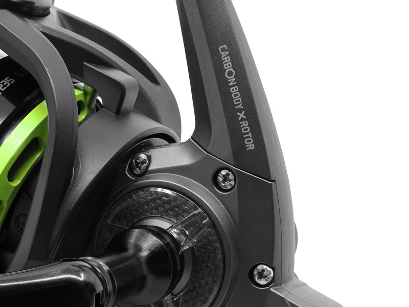 Вона оснащена високою конічною шпулею з закидною кромкою, що значно сприяє довжині вашого закиду. Неглибока металева шпуля розроблена для розміщення достатньої кількості волосіні. Корпус і ротор з карбону забезпечують низьку вагу котушки, незважаючи на її більші розміри. Під шпулею є захист, який запобігає небажаному заплутуванню волосіні під час намотування.