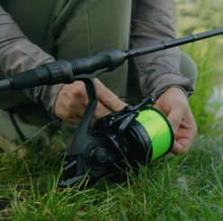 Під котушкою є пластиковий захист, який запобігає потраплянню волосіні під котушку під час закидання. Два металеві затискачі, розміщені на котушці, дозволяють точно спинити волосінь, що гарантує максимально точні закиди безпосередньо до місця годування.