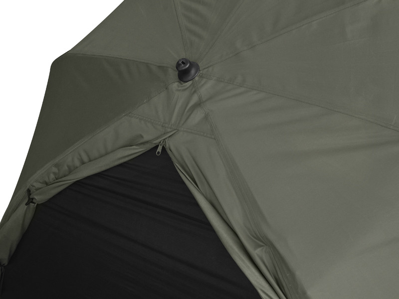 Brolly призначений для розміщення однієї розкладушки, але всередині залишається багато місця для стільця, сумок або іншого обладнання. Козирок над входом надійно захищає від проникнення води у Ваш бролі. Великі москітні вікна на передній панелі та величезне вікно ззаду покращують циркуляцію повітря, забезпечуючи комфорт навіть у най спекотні літні дні. У разі поганої погоди всі вікна можна закрити.