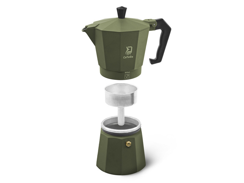 CoToGo складається з трьох частин, розташованих одна над одною. Нижня ємність служить для наповнення водою. У середній частині знаходиться сито, в яке поміщається мелена кава, і після закипання води вона проходить через сито з кавою, і у верхню ємність потрапляє готовий до вживання гарячий напій. Завдяки суцільнометалевій конструкції кавова машина дуже міцна, але легка і зручно зберігати. Корпус кавомашини відмінно проводить тепло, що забезпечує швидкий і рівномірний нагрів води. Маніпуляцію полегшує зручна пластикова ручка, стійка до високих температур, з якою подавати каву не складе труднощів. Тож якщо ви любите насолоджуватися доброю кавою на природі, то CoToGo – це продукт, який неодмінно повинен стати частиною вашого обладнання.