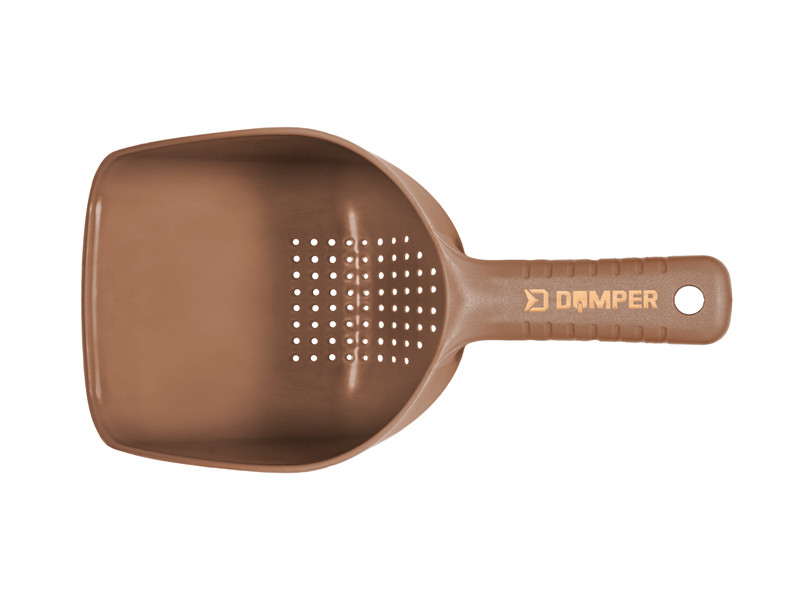Практична допомога у приготуванні годівлі та самій годівлі. Лопатка Delphin DUMPER з отворами повністю виготовлена із дуже міцного пластику, який дуже легко мити. Масивна пластикова ручка добре лягає в руку і полегшує збирання та подальшу подачу.