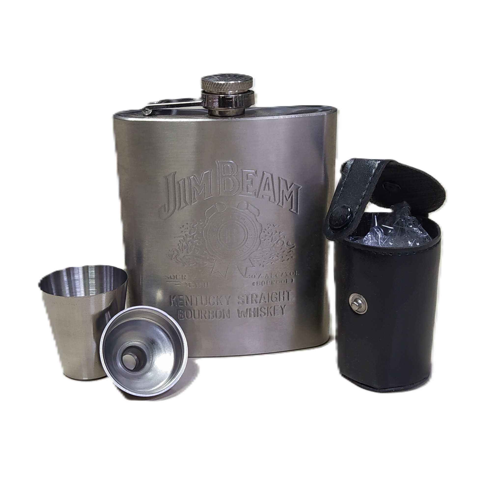 Фляга з нержавіючої сталі та набір стопочок з лійкою.