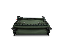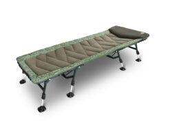 Основа ліжка – це стійка і легка стальна конструкція. Крім того, вона стійка до механічних пошкоджень. Конструкція покрита стьобаним матрацом із флісовою поверхнею, що робить його теплим і м’яким на дотик. Він також покритий міцною тканиною 600D у дизайні C2G з боків. Підголівник має додаткову зелену флісову підкладку для ще кращого комфорту. Центральна частина посилена знизу гумовим канатом, що дозволяє регулювати жорсткість матраца.