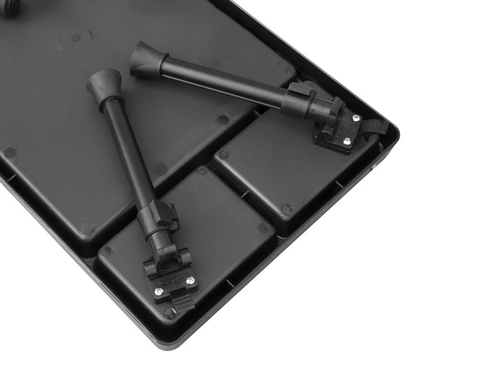 Коротше кажучи, пластиковий столик WORKS – це корисне рибальське спорядження, яким ви будете користуватися постійно. Має телескопічні ніжки, які можна підняти на 10 см, тому висота самого столу коливається від 24 до 34 см (вимірюється по верхньому краю столу). Ніжки можна зафіксувати спеціальною замковою системою, тому немає ризику, що стіл і речі на ньому впадуть. Кінці ніжок оснащені гумовими наконечниками для кращої стійкості. WORKS поставляється з сумкою для транспортування.