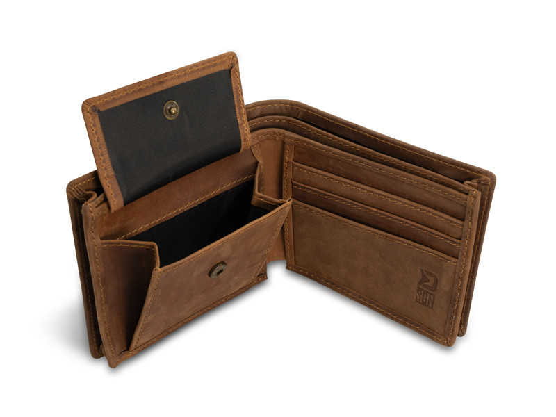 Містить кілька відділень для платіжних і клієнтських карток, кишеню на блискавці для монет або жетонів і, звичайно ж, є два основних відділи для зберігання банкнот.