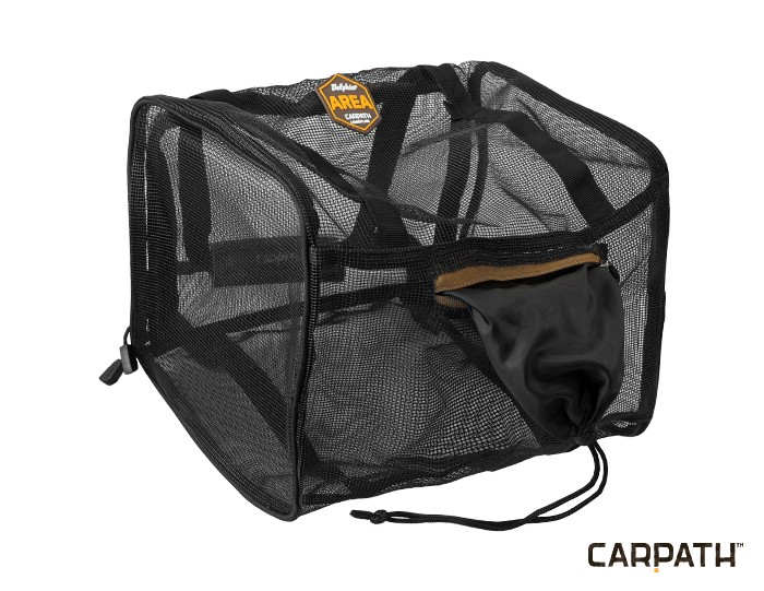 Сумка-сітка підходить для зберігання або сушіння бойлів на вудці. Завдяки ручці її легко повісити і зручно тримати в руці. Доступ до неї здійснюється або зверху, через великий отвір на блискавці, або знизу. Крім того, є так звана переливна кишеня з індивідуально регульованим шнурком. Незважаючи на компактні розміри, вона має великий об’єм 18,75 л.