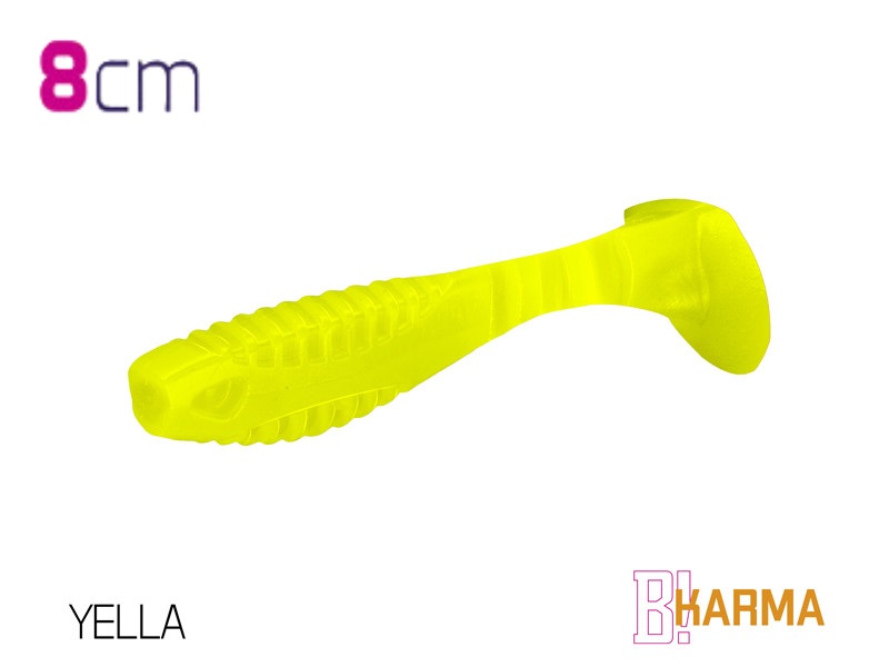 З самого початку ми сприйняли дизайн моделі KARMA як некласичне рішення класичної моделі. Метою було створити приманку з широким спектром використання, але по-своєму. З першого погляду можна помітити, що співвідношення розмірів тіла і хвоста приманки інше, ніж зазвичай. Більший хвіст приманки викликає нетиповий рух приманки, який, окрім коливання хвоста, додає ще й м’яке перекочування тіла, що створює враження вразливої здобичі. Цей рух надзвичайно привабливий для риби та дає вам нові можливості в роботі з наживкою. Між з’єднанням тіла приманки і хвоста моделюються три виїмки, які додають правдоподібності дії приманки. Тіло самої приманки оснащене поглибленнями на спині і черевці. На це є дві причини. По-перше, це посилення вібрацій у воді. Друга причина — полегшити оснащення приманки гачком. За допомогою насічок можна виміряти, де саме гачок буде виходити з приманки. Передня частина приманки в районі голови, модифікована вирізом для кращого прилягання приманки до джиг-головки.