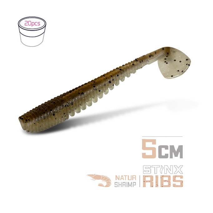 Силіконовий їстівний віброхвіст Delphin B StinxRIBS Креветка 5см/20шт / NATUR