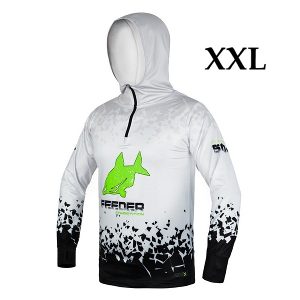 Ми також подумали про найспекотнішу частину тіла – голову. Футболка оснащена значно піднятим коміром і капюшоном, а також подовженими рукавами з отворами для великих пальців, що підвищує захист рук. Великою перевагою приємного, еластичного матеріалу є здатність швидко висихати у разі намокання під час риболовлі.