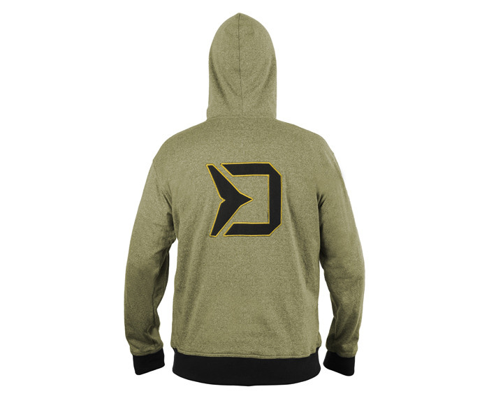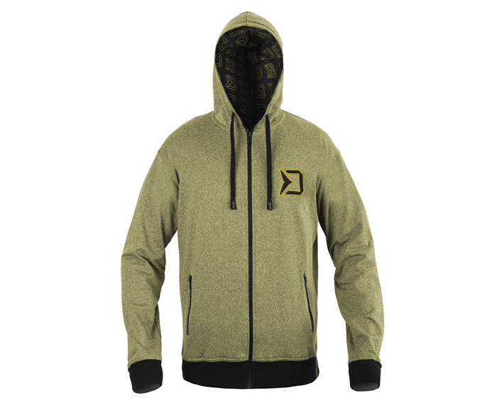 Толстовка Delphin RAWER TWO XXL – стильна та комфортна. Вона виконана в темно-зеленому кольорі в поєднанні з темно-зеленими манжетами на рукавах та в нижній частині кофти. Відмінною рисою цієї серії є практична блискавка, за допомогою якої кофтину можна повністю розстібнути. Є дві окремі кишені на блискавці, в яких можна тримати руки у теплі, коли на вулиці холодно. Висока якість цього продукту також підтверджується використанням найкращих блискавок YKK. На бігунках блискавки нанесено логотип Delphin. Попереду є невеликий логотип Delphin із зеленими деталями. Позаду ви знайдете той самий логотип, але вже більший. Внутрішня частина капюшона виконана з чорної тканини із друкованими логотипами Delphin. Капюшон легко регулюється двома чорними лямками з вишитим логотипом Delphin RAWER на обох кінцях. Такий самий логотип, але більшого розміру, можна знайти на поясній манжеті.