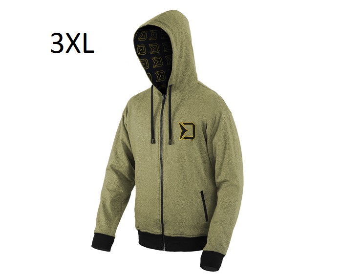 Толстовка Delphin RAWER TWO XXXL – стильна та комфортна. Вона виконана в темно-зеленому кольорі в поєднанні з темно-зеленими манжетами на рукавах та в нижній частині кофти. Відмінною рисою цієї серії є практична блискавка, за допомогою якої кофтину можна повністю розстібнути. Є дві окремі кишені на блискавці, в яких можна тримати руки у теплі, коли на вулиці холодно. Висока якість цього продукту також підтверджується використанням найкращих блискавок YKK. На бігунках блискавки нанесено логотип Delphin. Попереду є невеликий логотип Delphin із зеленими деталями. Позаду ви знайдете той самий логотип, але вже більший. Внутрішня частина капюшона виконана з чорної тканини із друкованими логотипами Delphin. Капюшон легко регулюється двома чорними лямками з вишитим логотипом Delphin RAWER на обох кінцях. Такий самий логотип, але більшого розміру, можна знайти на поясній манжеті.