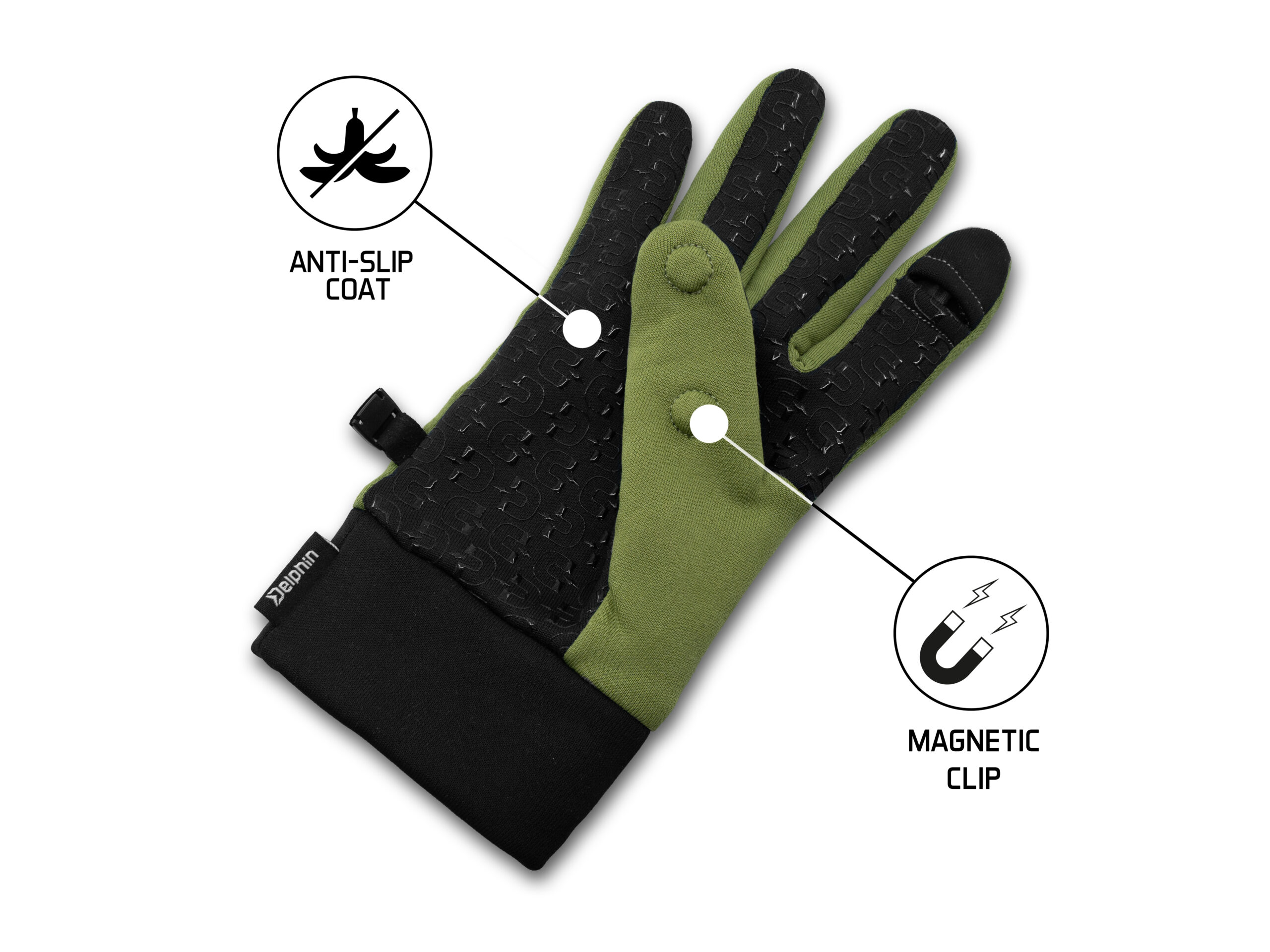 Сама тканина гладка і гнучка зверху, а знизу має гуму у формі магнітів, що покращує зчеплення та протиковзкі властивості рукавичок. Внутрішній флісовий шар м’який і теплий, що забезпечує комфорт під час зимової риболовлі.