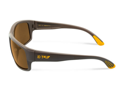 Ідеальний партнер для риболовлі та подорожей. Поляризовані сонцезахисні окуляри SG TRIP відрізняються сучасним дизайном та ефектним поєднанням коричневого та жовтого кольорів. В комплект входять окуляри, жорсткий транспортний кейс з гачком, який можна прикріпити в будь-якому місці, наприклад, в жилеті, рюкзаку або багажі. Окуляри мають коричневі лінзи. Сама рамка трохи розширена з обох боків і забезпечує захист від сонячних променів збоку. Дужки забезпечені гумовими вставками на кінцях для запобігання небажаному ковзанню на голові. Гумові контактні поверхні носа також сприяють комфортному носінню. Якщо поляризаційні окуляри SG TRIP впадуть у воду, турбуватися нема про що, вони залишаться на плаву.
