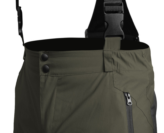 Штани літо Delphin CRUISER Lite trousers M доповнюють однойменну куртку. Регульовані підтяжки можна відстебнути. Також є два кармани з водонепроникними блискавками. Блискавка довжиною 25 см в нижній частині штанів полегшить знімання та одягання штанів. Штани значно розширюються в кінці, тому ви можете зняти їх, навіть якщо ви не знімали взуття. Штани літо Delphin CRUISER Lite trousers M виконані із зеленої тканини ripstop, на сідницях та колінах посилені чорною тканиною.