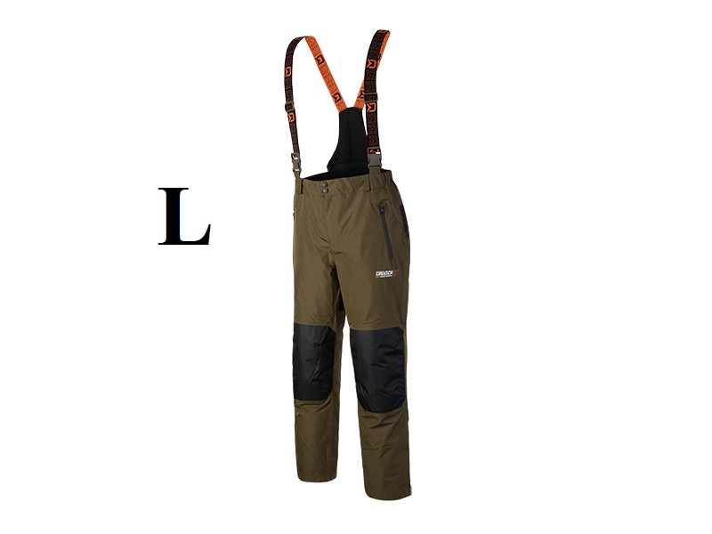 Однією з головних переваг штанів є підвищена талія в нижній частині спини, яка ідеально захистить поперек. В області сідниць і колін присутній посилений чорний матеріал, завдання якого захистити від зносу ці частини штанів, які найбільш схильні до зносу. У той же час він ефектно доповнює загальний дизайн, який також доповнюють стильні підтяжки з логотипами бренду Delphin.