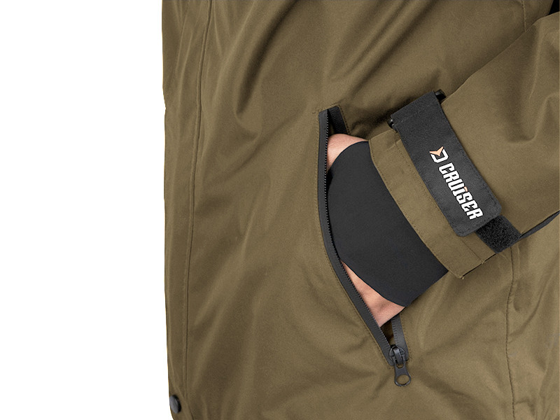 Набір CruiserCROS складається з куртки та штанів, що продаються окремо, що дає вам можливість комбінувати потрібний розмір кожної частини. Водонепроникний матеріал, який використовується для зовнішнього шару куртки та штанів, характеризується водяним стовпом 5000 мм, повністю проклеєними швами та стійкістю до вітру. Ці параметри гарантують комфорт і захист під час вашої риболовлі, повсякденного носіння або інших заходів на природі.