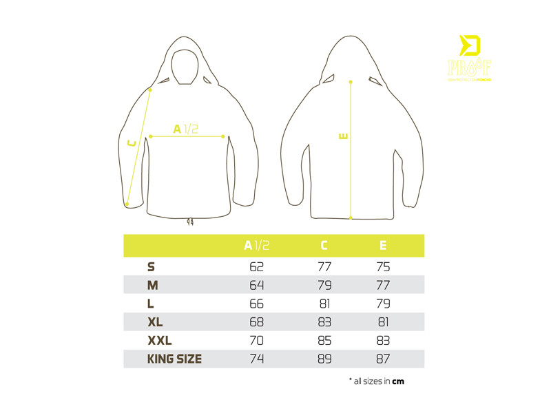 На кінцях рукавів вбудовані гумки для кращого захисту від води. В області між лопатками також є сітка з внутрішньої сторони, призначена для кращої вентиляції. Нижня частина куртки PROOF оснащена шнурком з пластиковими кінцями, які затягуються нижче рівня талії. З обох боків великі кишені з ефектним нахлестом.
