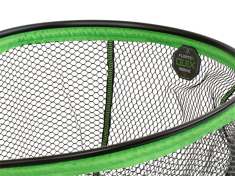 Плаваюча голова сачка овальної форми з серії REAXE має легку та міцну раму з чорного алюмінію. Сітка FloateR QUIX повністю прогумована, тому не вбирає навколишню воду та легко та швидко висихає на повітрі. Крім того, каркас прошитий характерною зеленою тканиною по всьому периметру для підвищення міцності та довговічності.