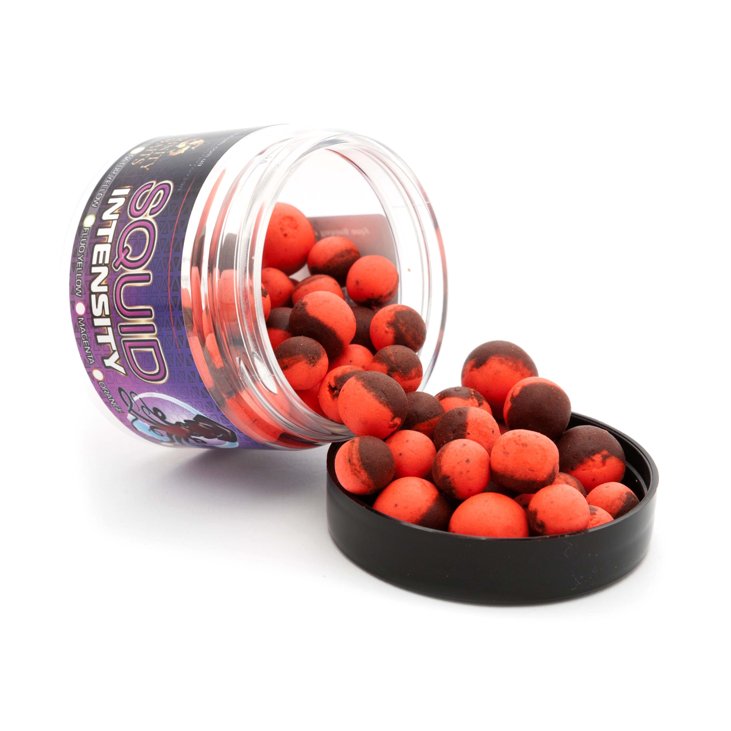 Серія вафтерсів SQUID GAME INTENSITY зроблено в основному для спорту. Ця серія – це десять топових кольорів верху вафтерса, які найчастіше використовуються, в залежності від умов. І фішка – це різна плавучість, наприклад у 14 мм менша а у 10 мм більша. В кожній баночці – три розміри: 10мм, 12мм, 14мм. (порада від виробника: менший розмір використовувати при поганому клюванні а більший коли кльов добрий).