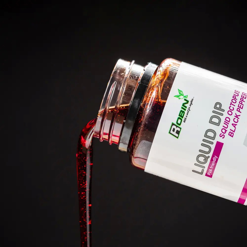 ЛІКВІД-ДІП ROBIN – Це високоякісна рідина яка має потужний склад який чудово виділить вашу насадку та принаду на фоні усіх ароматів водойми. Завдяки тому що даний ліквід-діп не розчиняє PVA сітку, ви можете діпувати у ньому ваші ПВА стіки та ПВА пакети, що затримає їх розчинення, а також додатково виділить вашу насадку на фоні кормового столу.