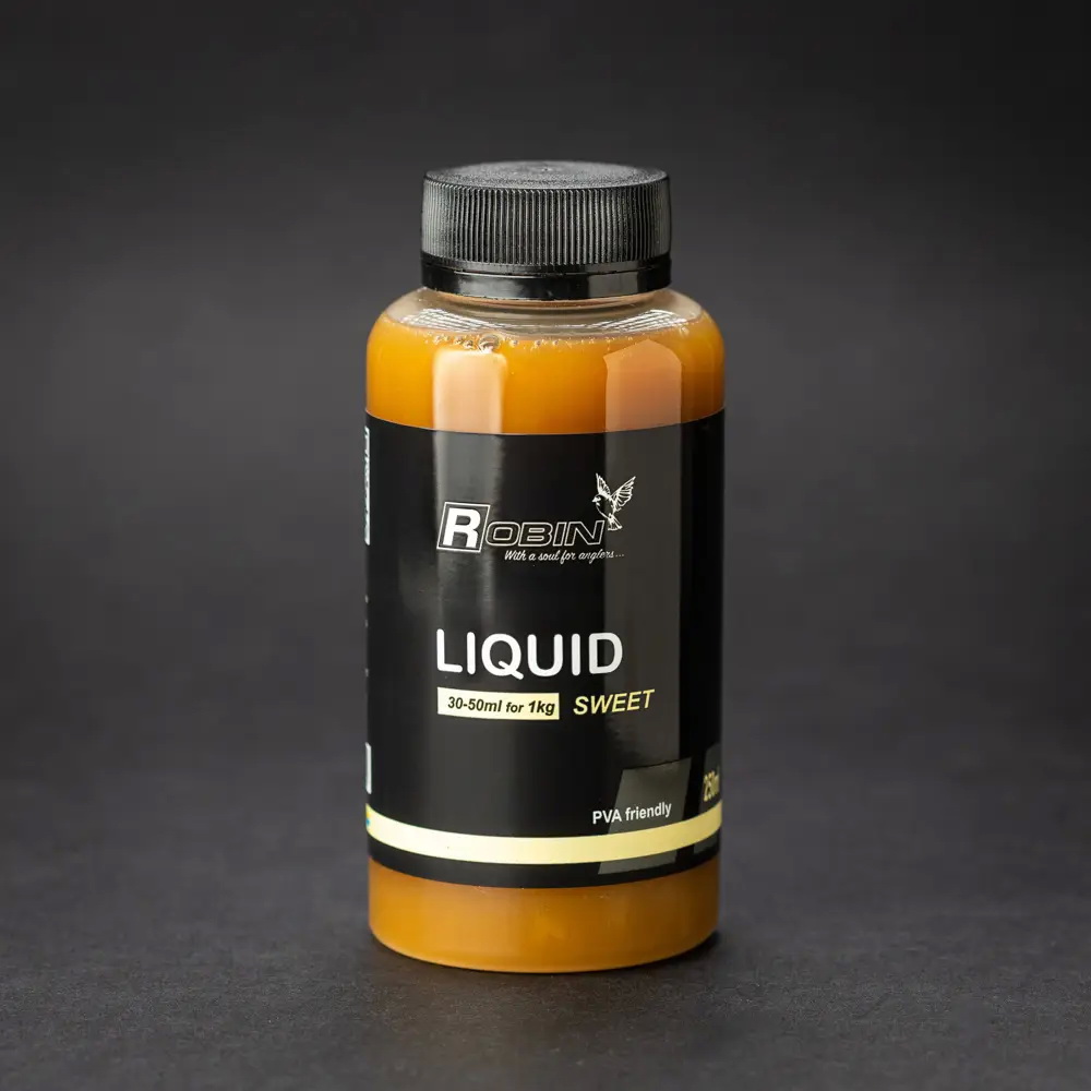 LIQUID ROBIN SWEET – Це ліквід який має дуже стійкий вершково-арахісовий аромат. Даний ліквід знайде застосування у поєднанні з пеллетсем, бойлами, зерновими а також іншими складовими прикормки. Хмара димки який робить даний ліквід пришвидшить дію прикормки та змусить рибу значно швидше на неї підійти та відреагувати на вашу насадку.