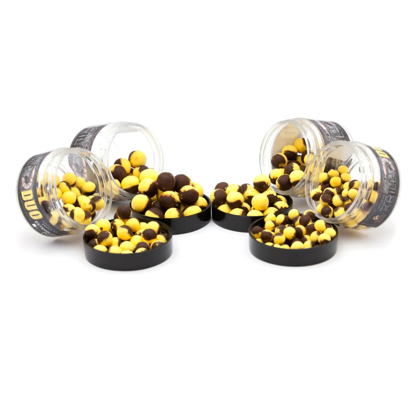 З назви Дуо можна зрозуміти що цей вафтерс складений з 2 частин з’єднаних між собою. Одна частина це яскравий апетитний плавучий поп-ап, а друга частина це ароматний варений бойл. Таке поєднання і створює саме ту ідеальну насадку яка здатна вдало приманити навіть самого вибагливого коропа.