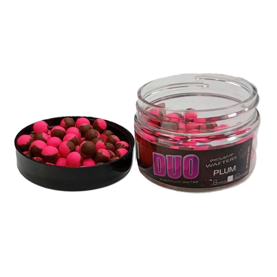 З назви Дуо можна зрозуміти що цей вафтерс складений з 2 частин з’єднаних між собою. Одна частина це яскравий апетитний плавучий поп-ап, а друга частина це ароматний варений бойл. Таке поєднання і створює саме ту ідеальну насадку яка здатна вдало приманити навіть самого вибагливого коропа.