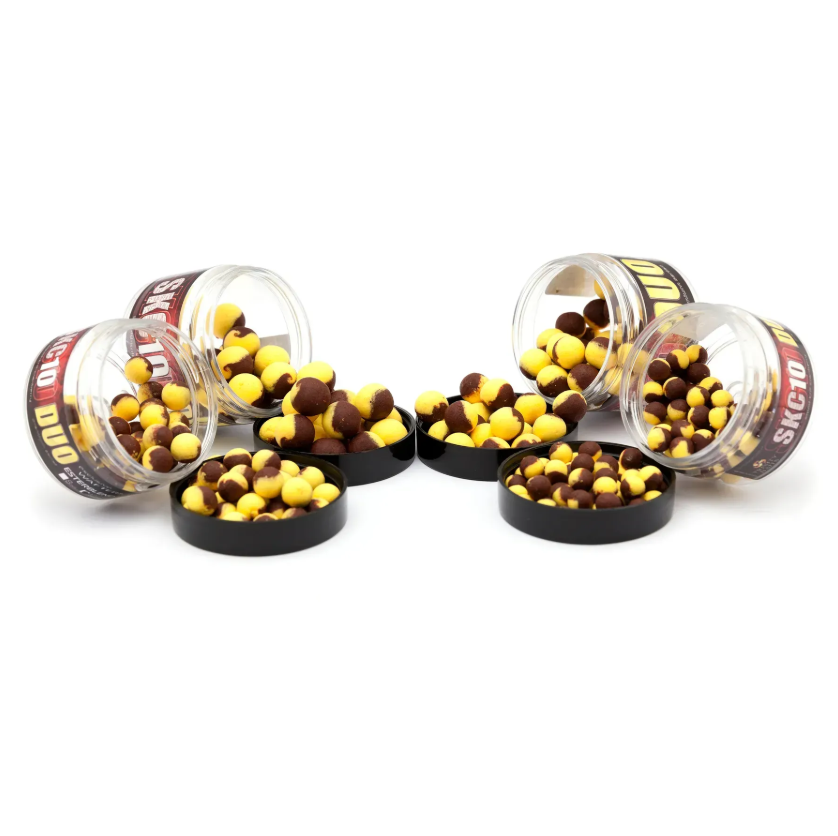 З назви Дуо можна зрозуміти що цей вафтерс складений з 2 частин з’єднаних між собою. Одна частина це яскравий апетитний плавучий поп-ап, а друга частина це ароматний варений бойл. Таке поєднання і створює саме ту ідеальну насадку яка здатна вдало приманити навіть самого вибагливого коропа.