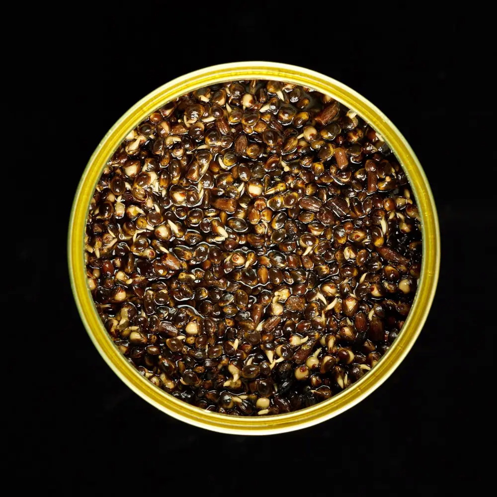 Конопля консервована з цілих зерен – виготовляється безпосередньо в банках, зерна проходять спеціальну термічну обробку, що забезечує максимальне збереження поживних властивостей та аромату продукту.