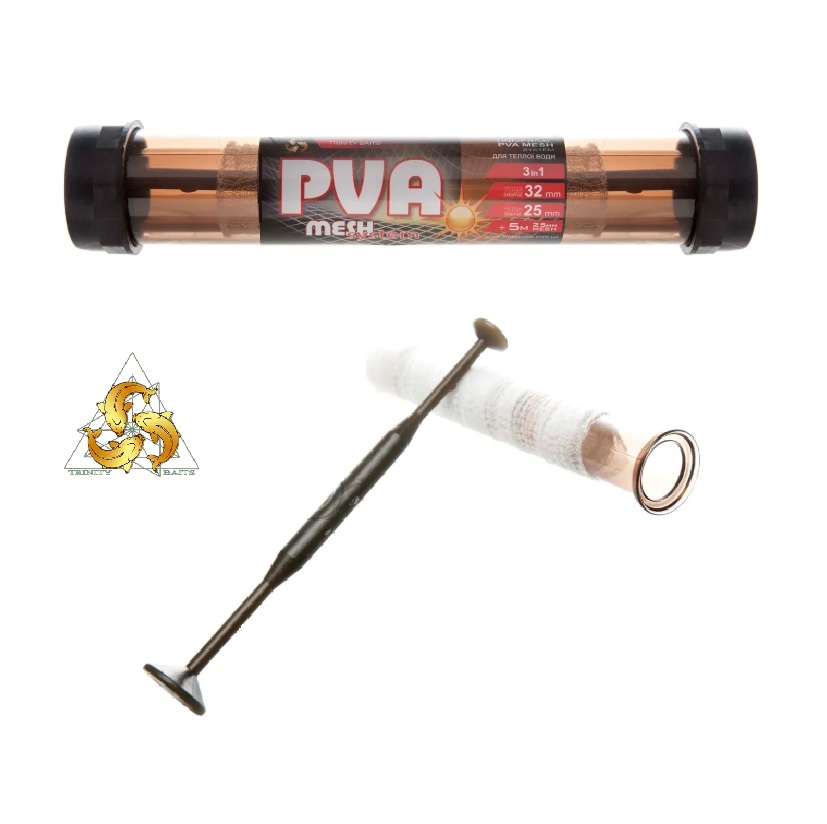 PVA Система Trinity Baits призначена для швидкого виготовлення стіків, оснащена ПВА Сіткою Trinity Baits для риболовлі преміум якості, виготовлена на натуральній основі!