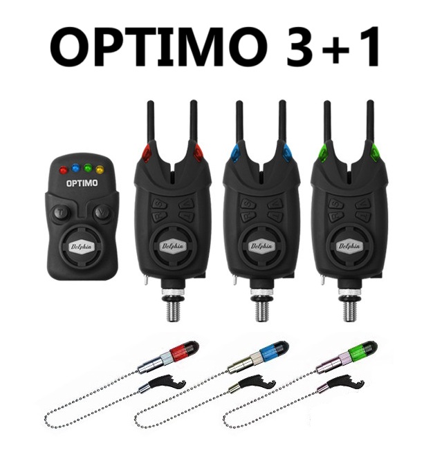 Набір Delphin OPTIMO слідує за величезним успіхом наборів від бренду Delphin. У комплекті є можливість світлової, звукової та вібраційної сигналізації. Він на 100% водонепроникний, а сигналізатори живляться від батарейок 9В, що гарантує тривалий термін служби. Приймач живиться від батарейок 3xAAA. Окрім високої міцності, радіус дії до 200 метрів є одним із найбільших переваг цього набору, залежно від навколишніх умов!