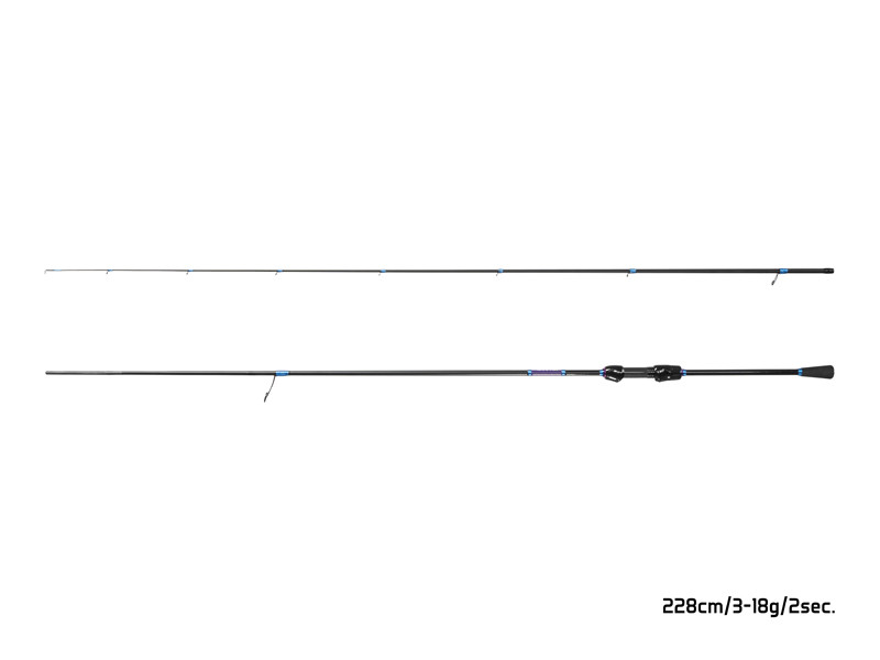 Катушкотримач вудилища дуже легкий і завдяки своїй ергономічній формі ідеально лежить в руці. По всій довжині ми використали кільця із синьою металевою обмоткою, які розташовані на відстані, щоб гарантувати рівномірний розподіл сили та оптимальний баланс вудилища. Поверхнева обробка матова, доповнена глянцевою поверхнею на ручці з ефектним 3К карбоновим мотивом.